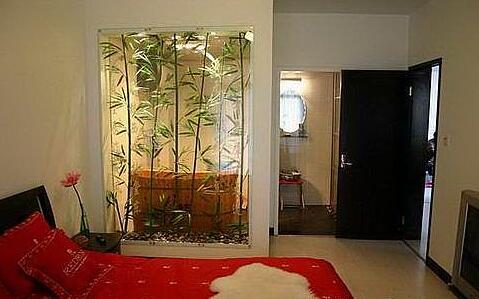 走進臥室,撲面而來的是整整一面墻的綠色風景,會不會讓人豁然開朗?“綠植墻”的出現讓你的臥室充滿了活力和新鮮感。大膽地摒棄實體墻這道界限,用一整面透明玻璃為房間提供變幻無窮的光影和色彩吧。躺在舒適的床上,透過玻璃欣賞翠竹在風中搖動,幸福感油然而生。配合這面“綠植墻”,還可以給臥室天花板進行一個小改動。藍色是有助于睡眠的顏色,將天花板涂成淡淡的藍色,是不是有一種睡在藍天下與自然相伴的感覺呢?