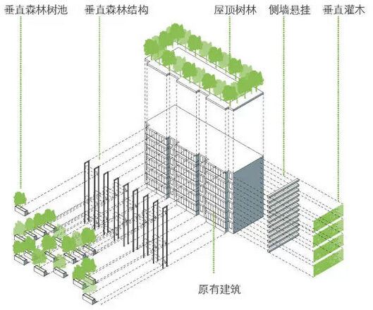 項目建議二:混凝土玻璃幕墻+垂直森林改造